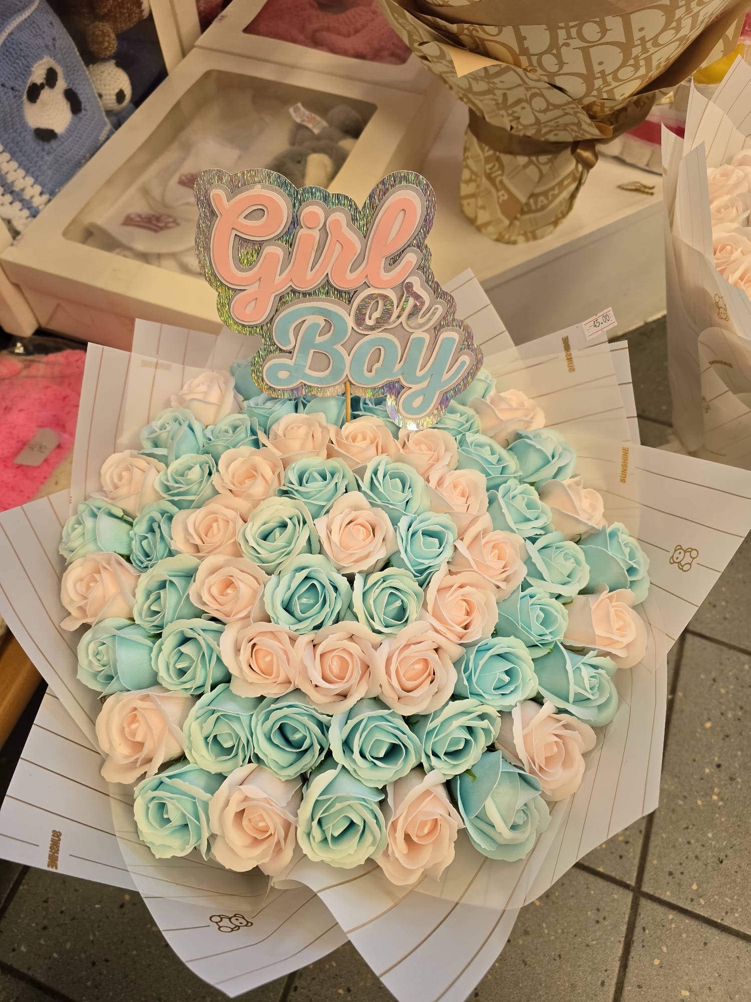 Celebrate your baby shower or gender reveal with this stunning Pink & Blue Artificial Rose Bouquet. Adorned with a festive “Girl or Boy” topper, it’s the perfect decoration and gift for expecting parents. The bouquet is handcrafted with premium-quality artificial roses, ensuring long-lasting beauty without wilting. Ideal as a table centerpiece, party décor, or keepsake gift. Customization available – you can request different colors, sizes, or personalized messages.