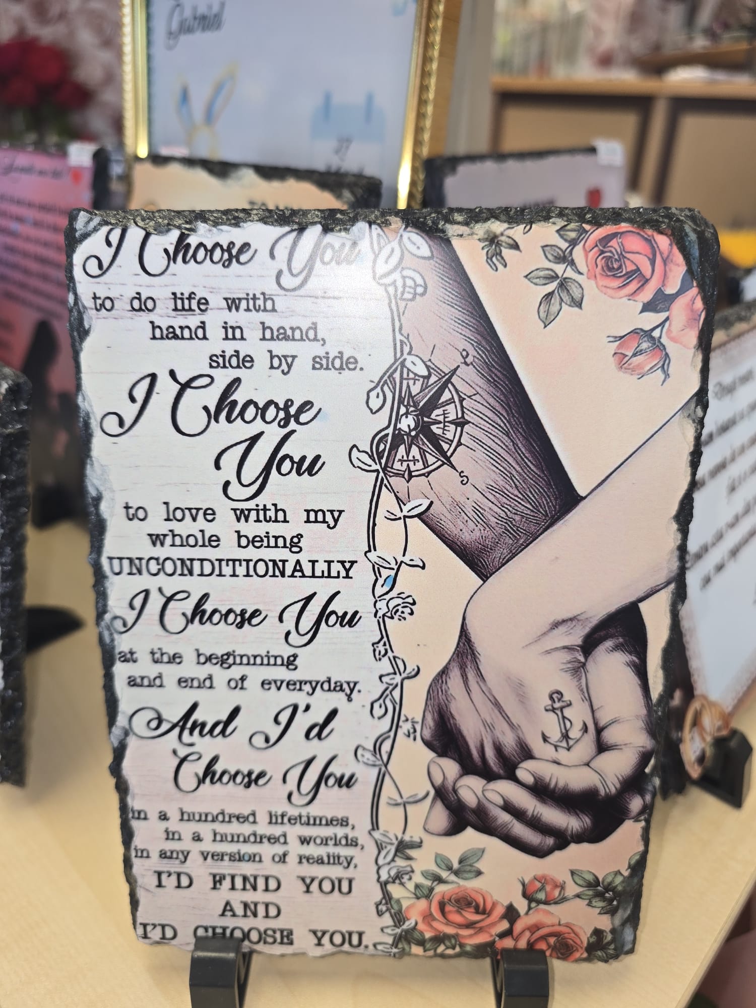 Express your love with this Romantic “I Choose You” Slate Plaque, featuring a touching love poem and a symbolic couple illustration. Crafted on rustic slate, it makes the perfect keepsake for anniversaries, weddings, or Valentine’s Day.