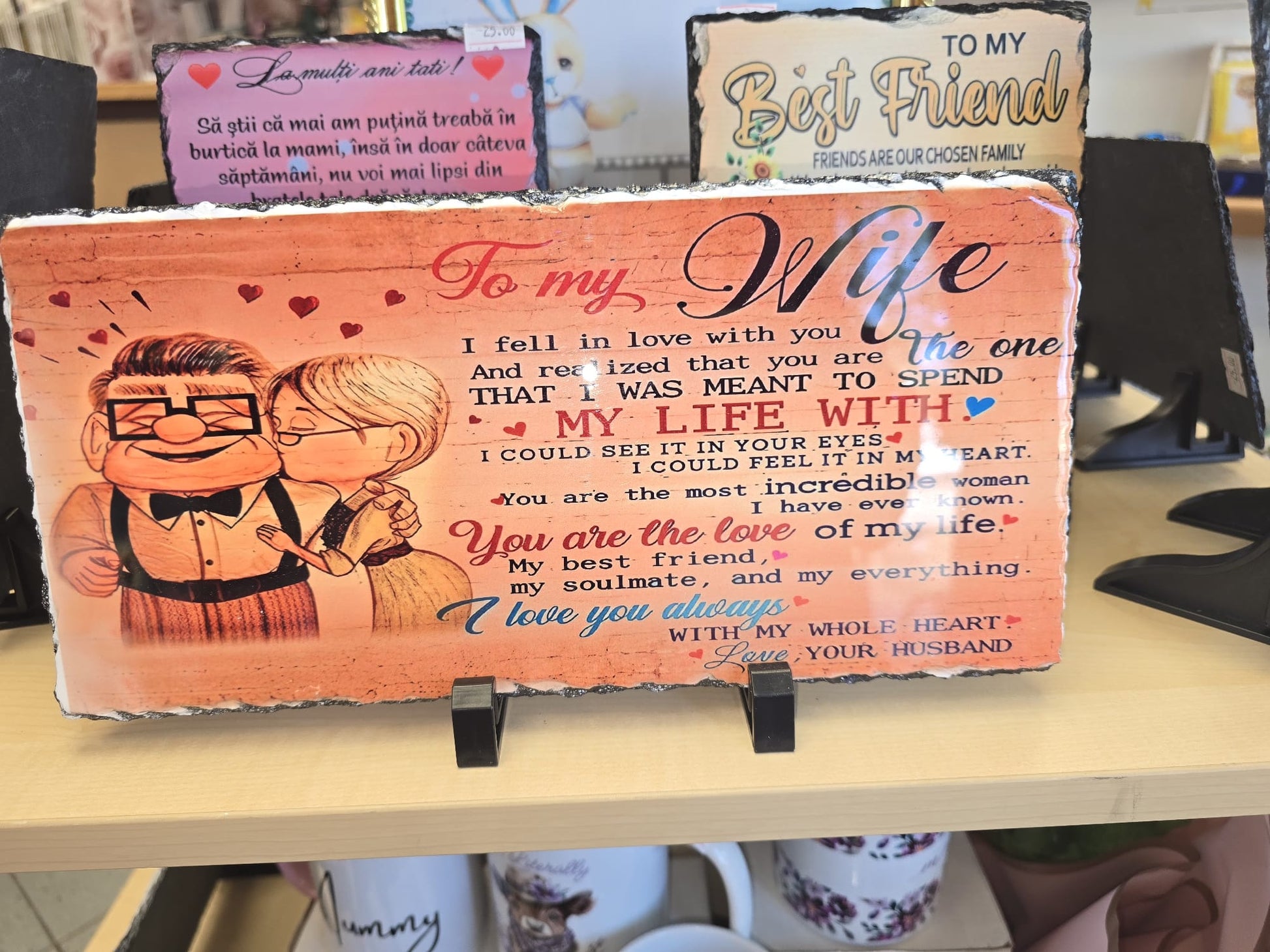 Celebrate your love with this Romantic Wife Plaque, featuring a heartfelt poem and a sweet couple illustration. Crafted on durable slate with rustic edges, it’s a keepsake gift that says “I love you” in the most beautiful way.
